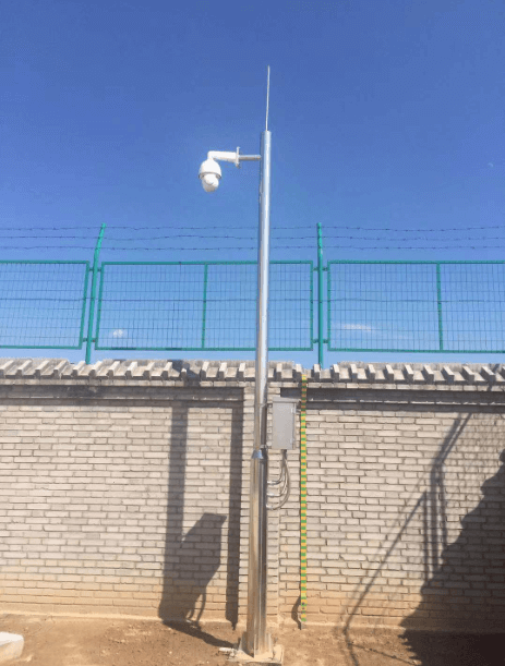 中國石油場站,壓氣站304不銹鋼監控桿施工現場,監控桿高度4.5米,材質為純304不銹鋼,壁厚4mm。